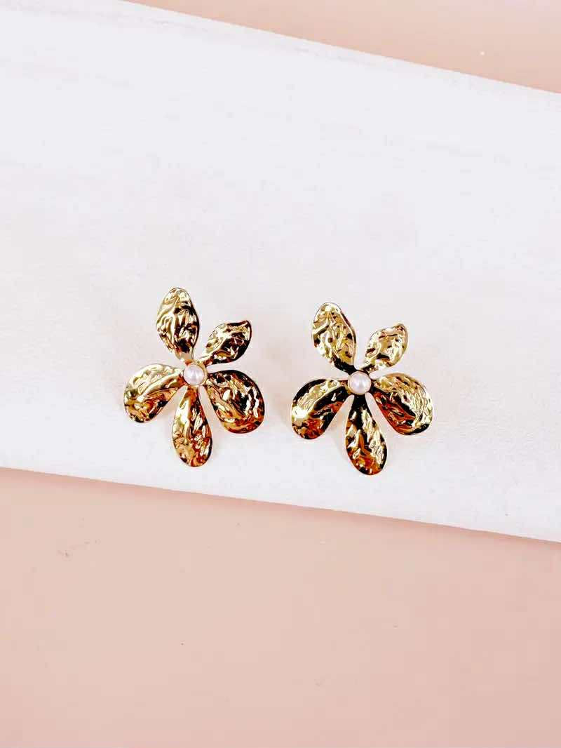 Boucle d’oreille demi-fleur doré